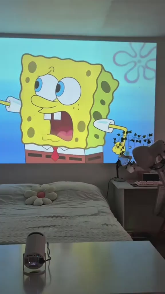 Place it anywhere — on a table, on a shelf, or even project on the ceiling for the ultimate lazy movie night experience.